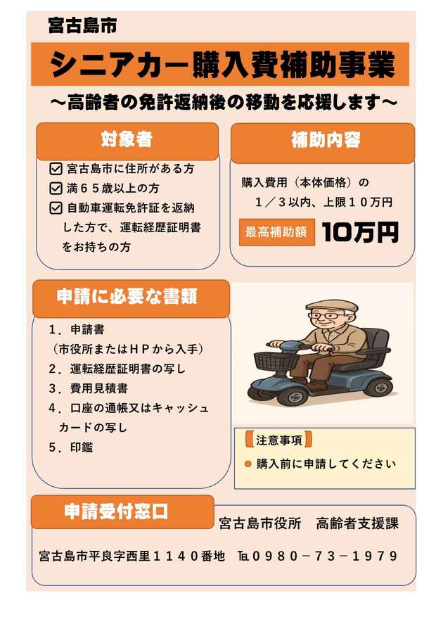 【令和7年5月7日付 情報更新】宮古島市シニアカー購入費補助事業について