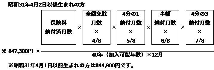 40年に満たないときは減額されます。計算式は以下のとおりです。