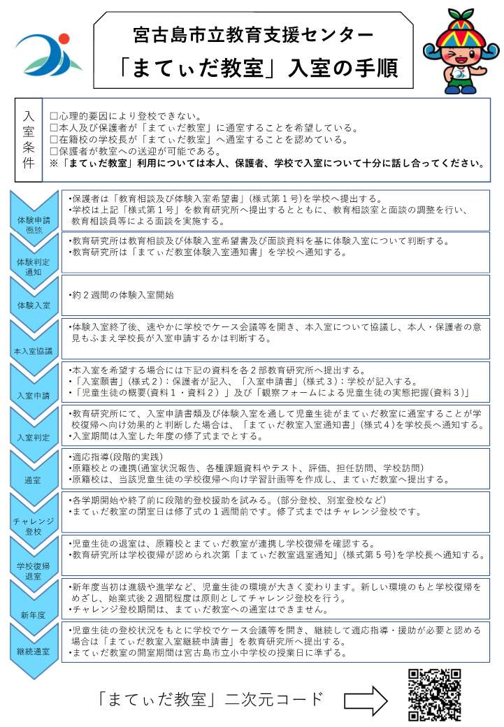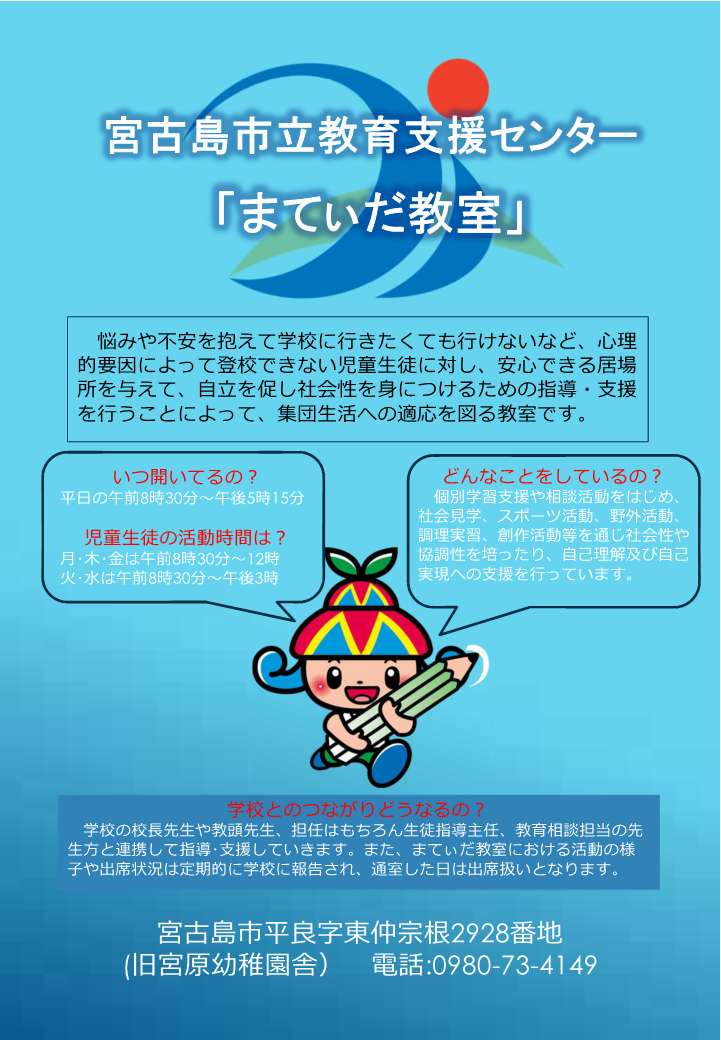 宮古島市適応指導教室 「まてぃだ教室」と称する。