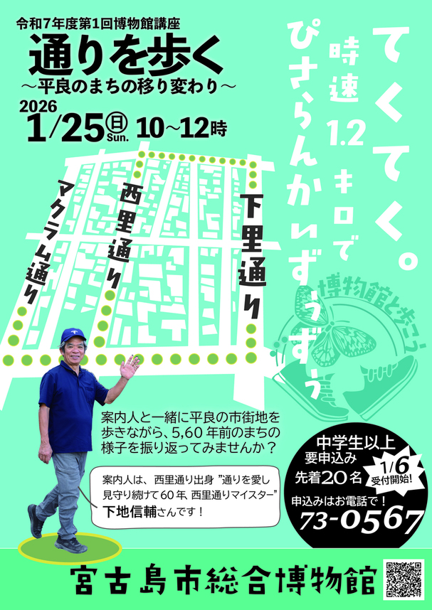 宮古島市広報誌と公式LINEでお知らせしていました第1回博物館講座「通りを歩く〜平良のまちの移り変わり〜」ですが