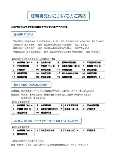 下記のお手続きは、各出張所で可能な手続きとなっておりますので、お近くの各出張所をご利用いただくようご協力お願いいたします。